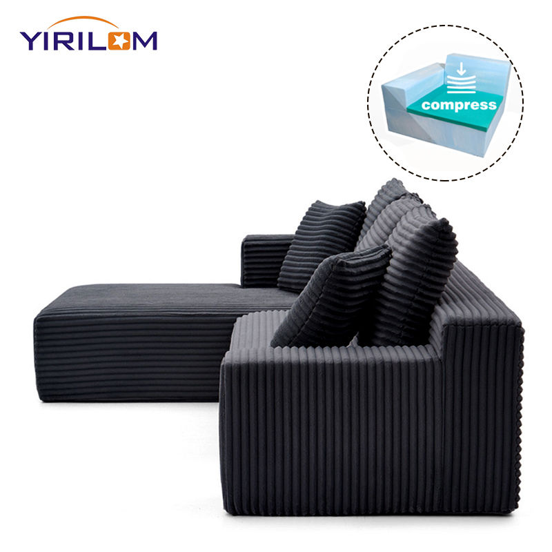 | Markeren: | L-vormige modulaire bank converteerbare stoel,grijs pluche corduroy stoffenbank,woonkamer gecomprimeerde bank |